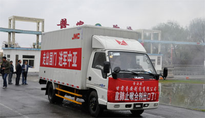 2016年4月15日,甘肅普安制藥有限公司120ml規格宣肺止嗽合劑,承載著普安人的夢想,裝上了駛往中亞的希望快車,即將沿著絲綢之路經濟帶主要樞紐新疆跨出國門,走向中亞。在公司發展中具有里程碑意義,實現宣肺止嗽合劑銷售由國內走向國外的創舉。
