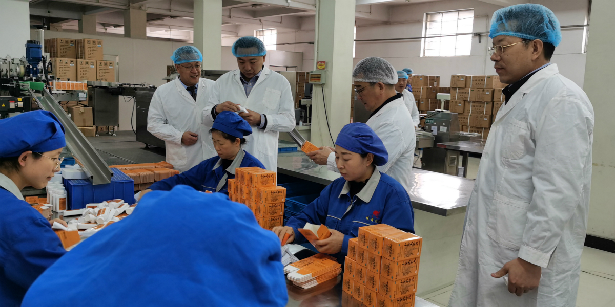 魏陽一行在程俊峰等陪同下,先后實地考察了建設之中的岐黃中醫藥產業園、生產基地綜合包裝車間、檢驗檢測實驗室、藥品展室等,雙方就項目建設、產業發展、企業運營等進行廣泛交流。