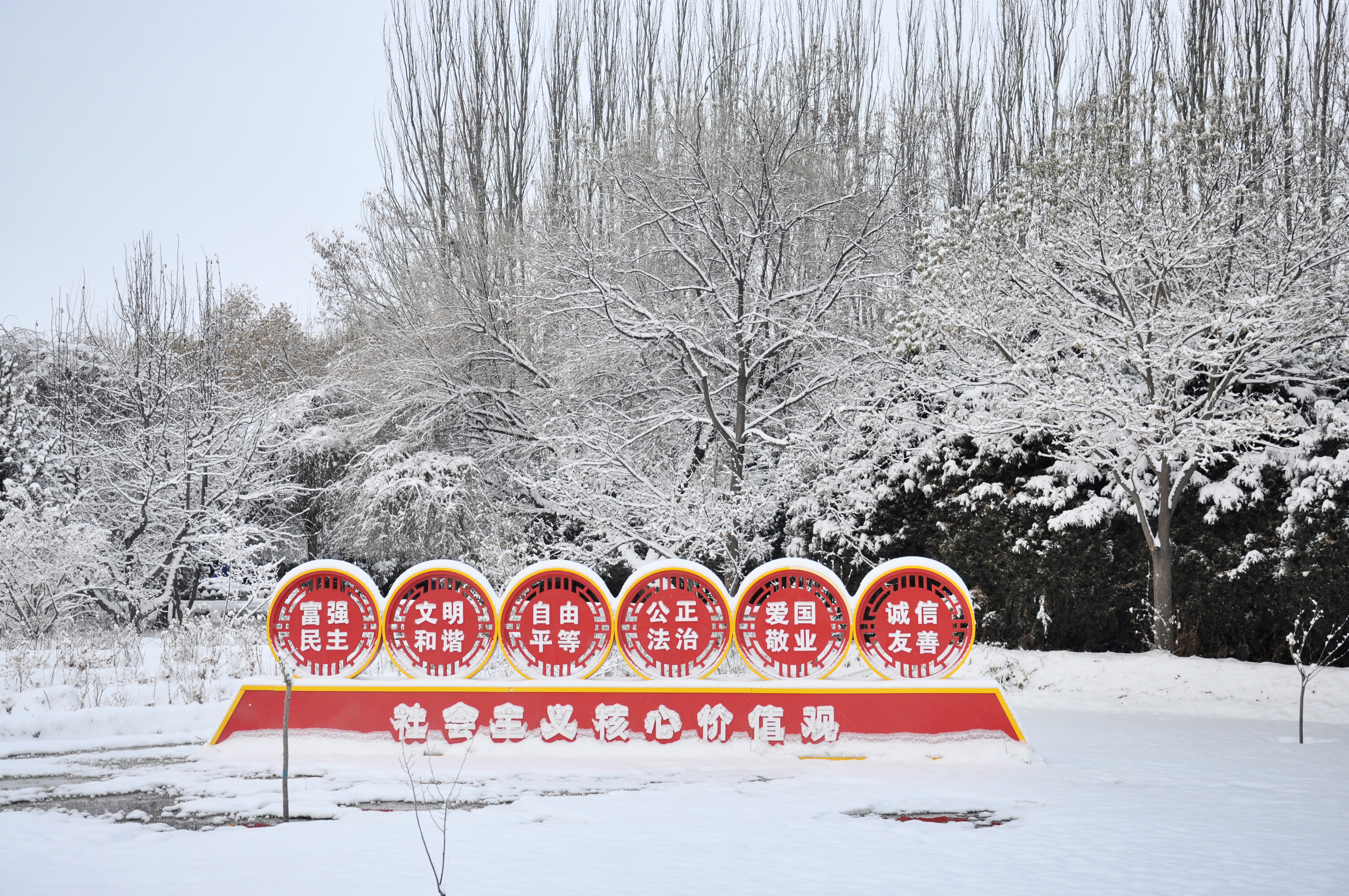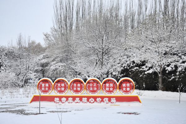 初冬的雪,洋洋灑灑下了整天。雪后的清晨,初升的太陽為銀裝素裹的普安鑲上金邊。