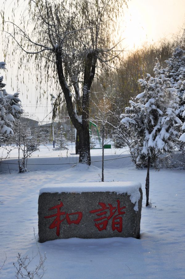 冬雪,為尚未落去的柳葉掛上晶瑩;為常青的松柏蓋上棉被。一切都顯得恬靜、素雅,唯一能聽到的便是咯吱作響的腳步聲,并不吵鬧,卻為這寒冷、靜謐的清晨增添了一份樂趣。