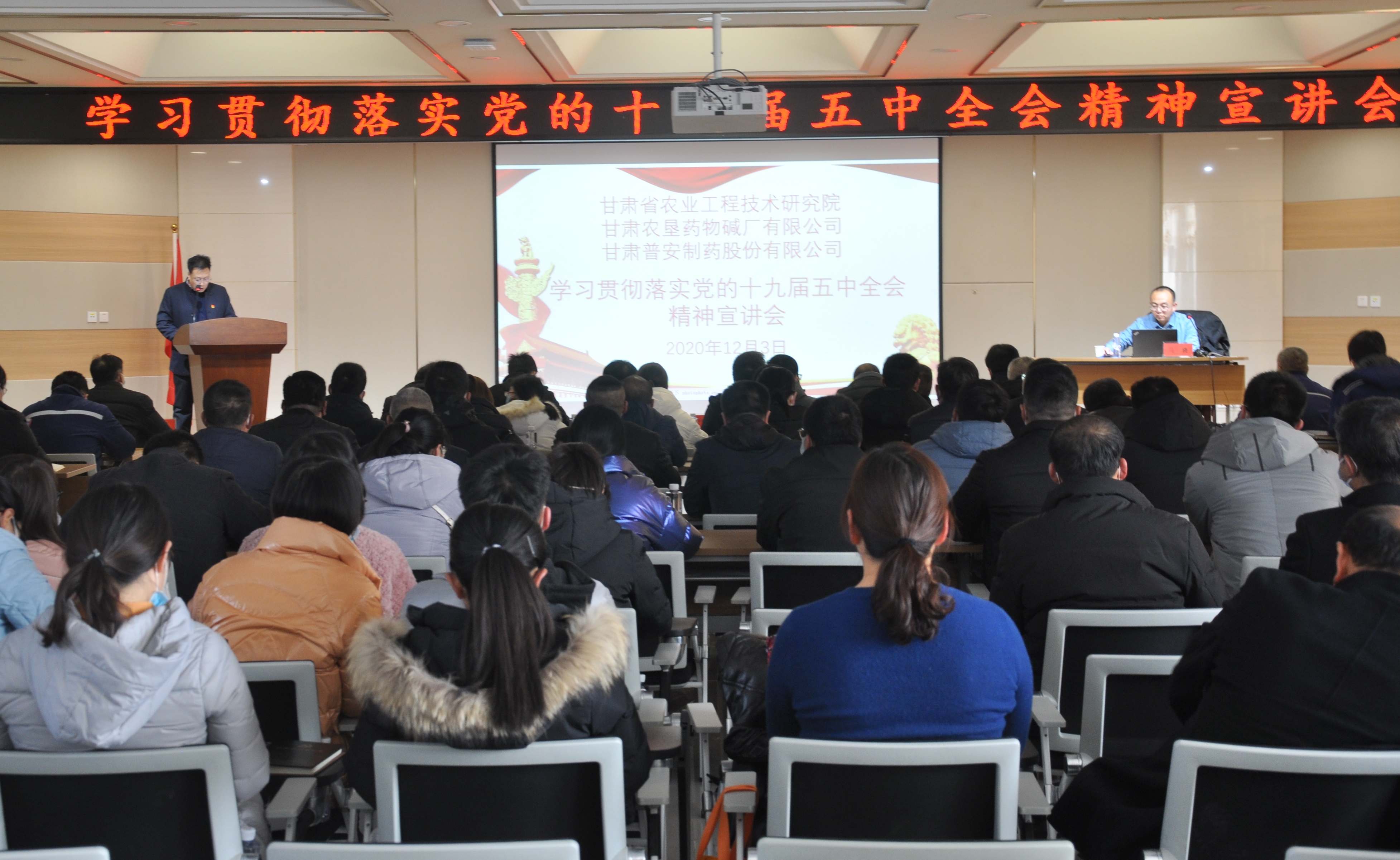 甘肅藥業集團普安制藥股份有限公司、甘肅省農墾工程技術研究院、甘肅農墾藥物堿廠有限公司聯合召開學習貫徹黨的十九屆五中全會精神宣講會