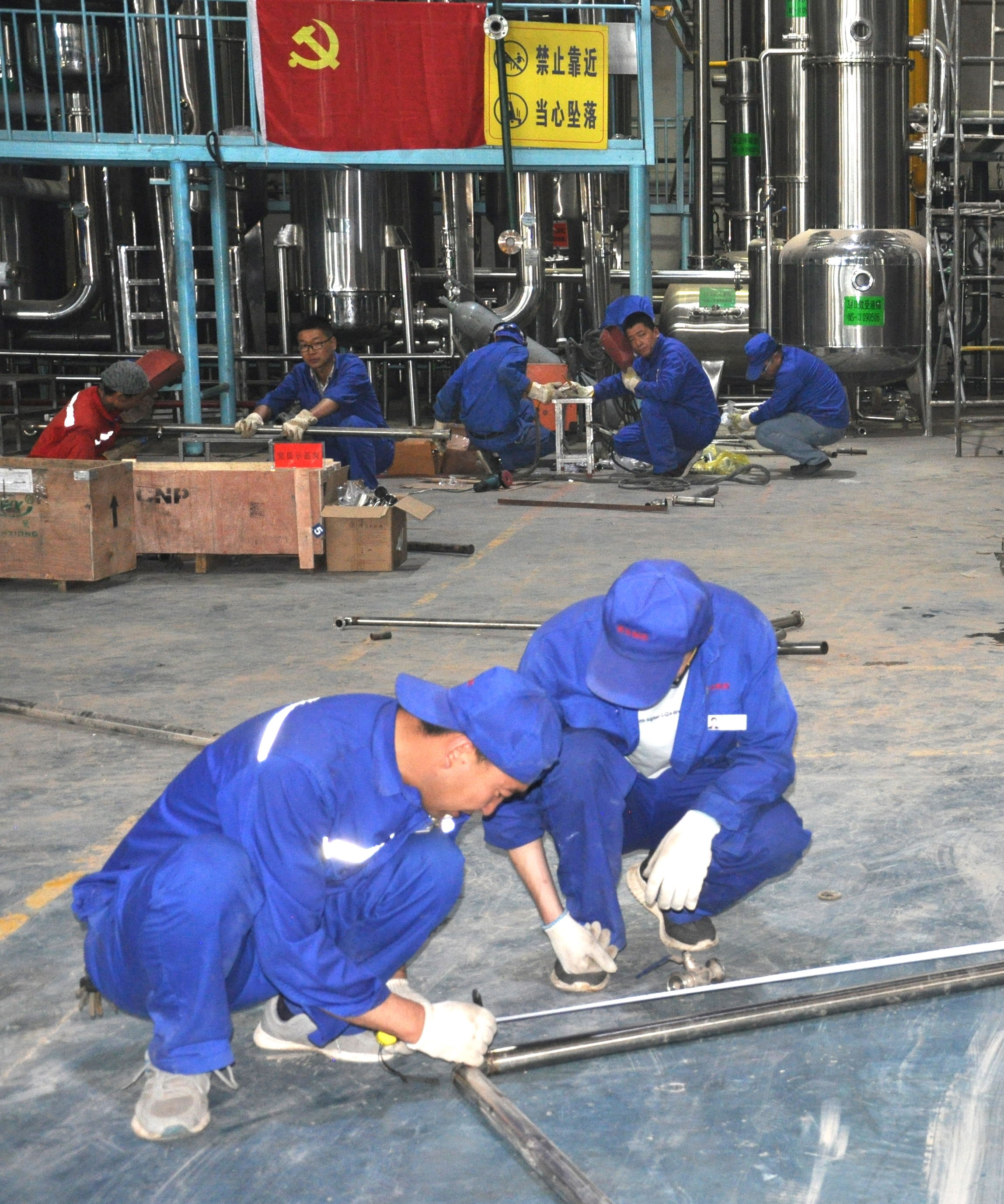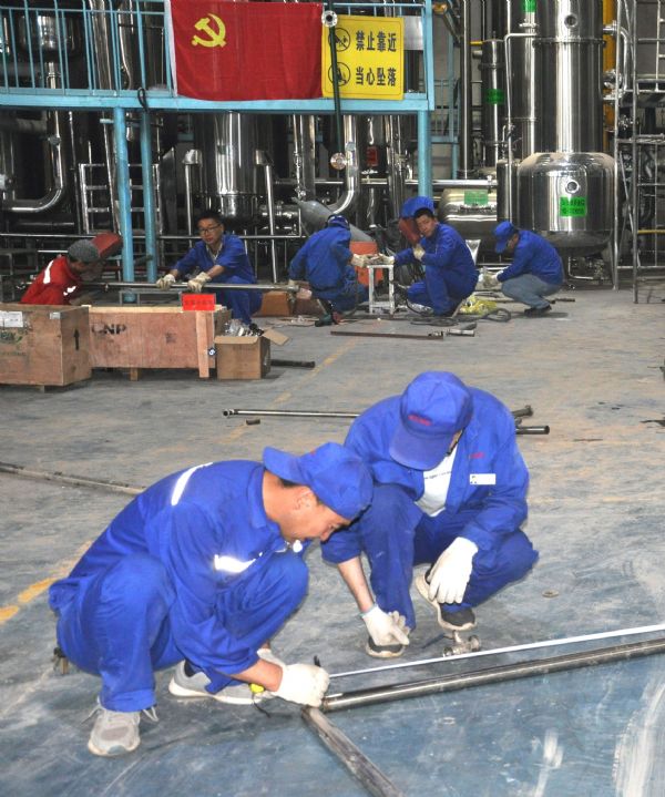 7月中旬,公司正式停機(jī),公司領(lǐng)導(dǎo)、生產(chǎn)管理部、維修班及公司技術(shù)人員成立了技改小組,對(duì)車間廠房、設(shè)備設(shè)施及管線等進(jìn)行施工安裝。為了保證項(xiàng)目進(jìn)度,確保擴(kuò)產(chǎn)改造工程順利進(jìn)行,公司黨員充分發(fā)揮黨員先鋒模范作用,積極開展技術(shù)傳幫帶,自發(fā)組織設(shè)立了三個(gè)“黨員示范崗”。黨員領(lǐng)導(dǎo)干部帶頭工作在一線,帶領(lǐng)職工齊心協(xié)力攻克難題,不辭辛勞的加班加點(diǎn)工作。截至7月22日,提取車間廠房擴(kuò)建、提取罐、濃縮罐等已安裝完成,部分管線也已完成更換,新增的管道正在進(jìn)行安裝;配制灌裝車間的功能間擴(kuò)建已完成,配制罐和純化水儲(chǔ)罐也已安裝完成,正在進(jìn)行管線連接,空調(diào)系統(tǒng)的安裝也在同時(shí)進(jìn)行。