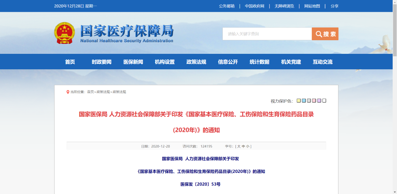 12月28日,國家醫療保障局正式發布了新版的《國家基本醫療保險、工傷保險和生育保險藥品目錄(2020年)》(以下簡稱《2020年藥品目錄》)。《2020年藥品目錄》自2021年3月1日起正式執行。