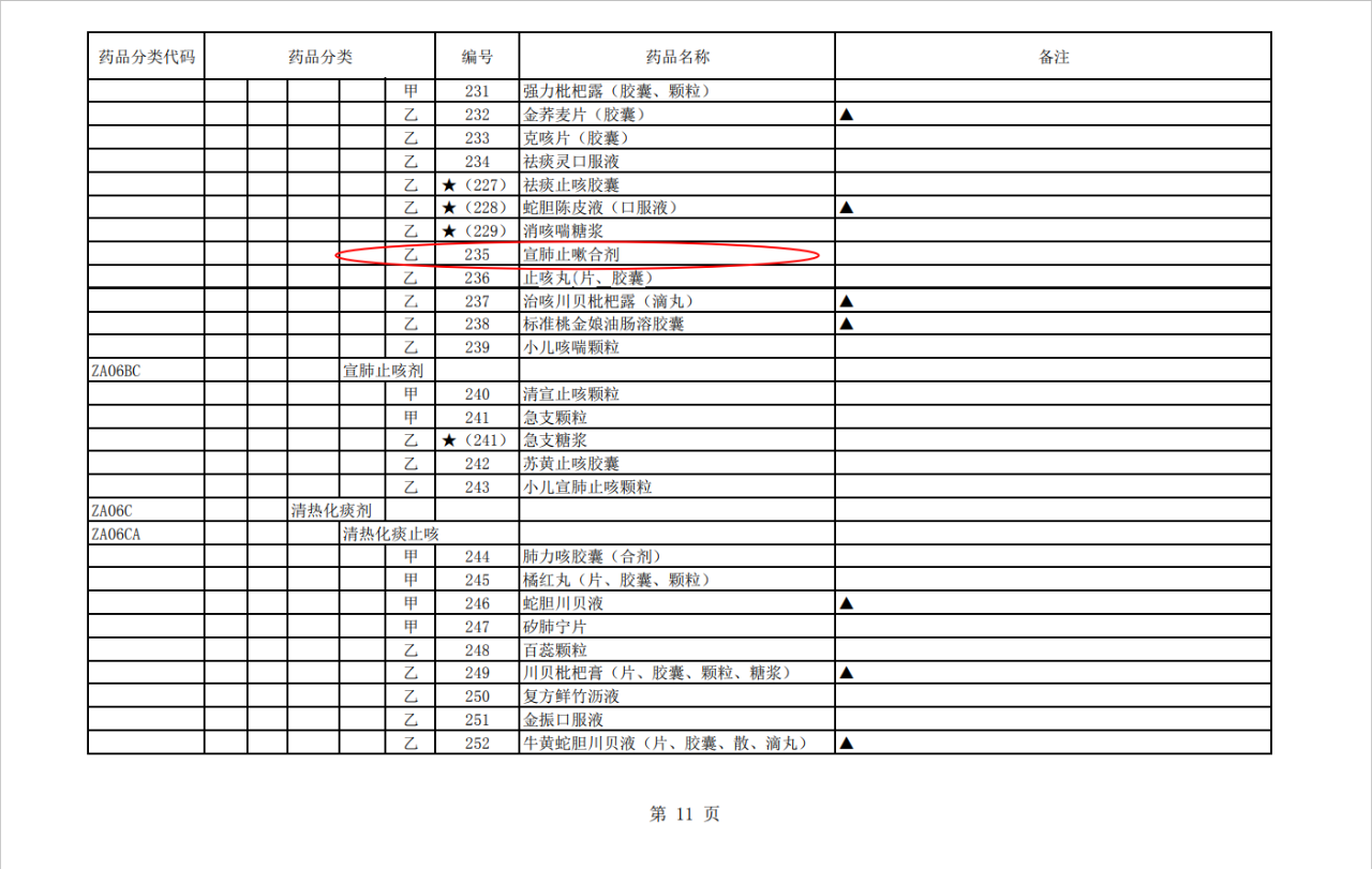 甘肅普安制藥股份有限公司主打產品宣肺止嗽合劑被納入中成藥部分,藥品分類代碼:ZA06BB,藥品分類:祛痰止咳劑乙類,編號:235號。
