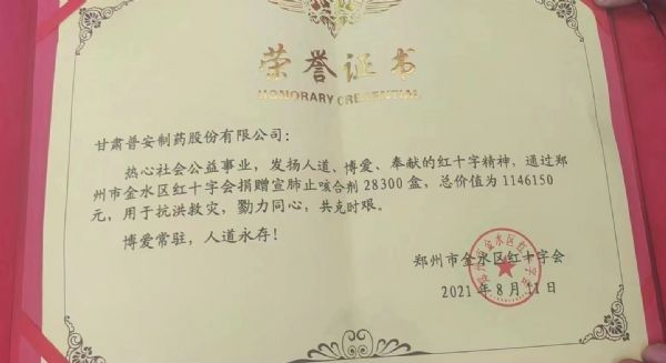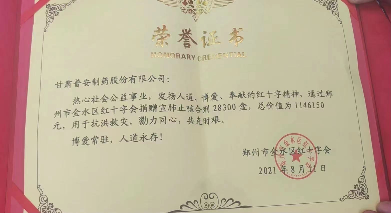 近期,國內多地相繼發(fā)生新冠疫情,疫情防控形勢非常嚴峻、復雜,而河南省多地又受到洪澇災害影響,洪澇災害后面臨著災情、疫情雙重挑戰(zhàn)。為履行社會責任,彰顯“一方有難,八方支援”的擔當,作為國有企業(yè),甘肅藥業(yè)集團普安制藥會同中華中醫(yī)藥學會第一時間組織抗疫物資的捐贈(價值114.6萬元的藥品)供災后防疫使用,助力河南省做好災后疫情防控工作。
