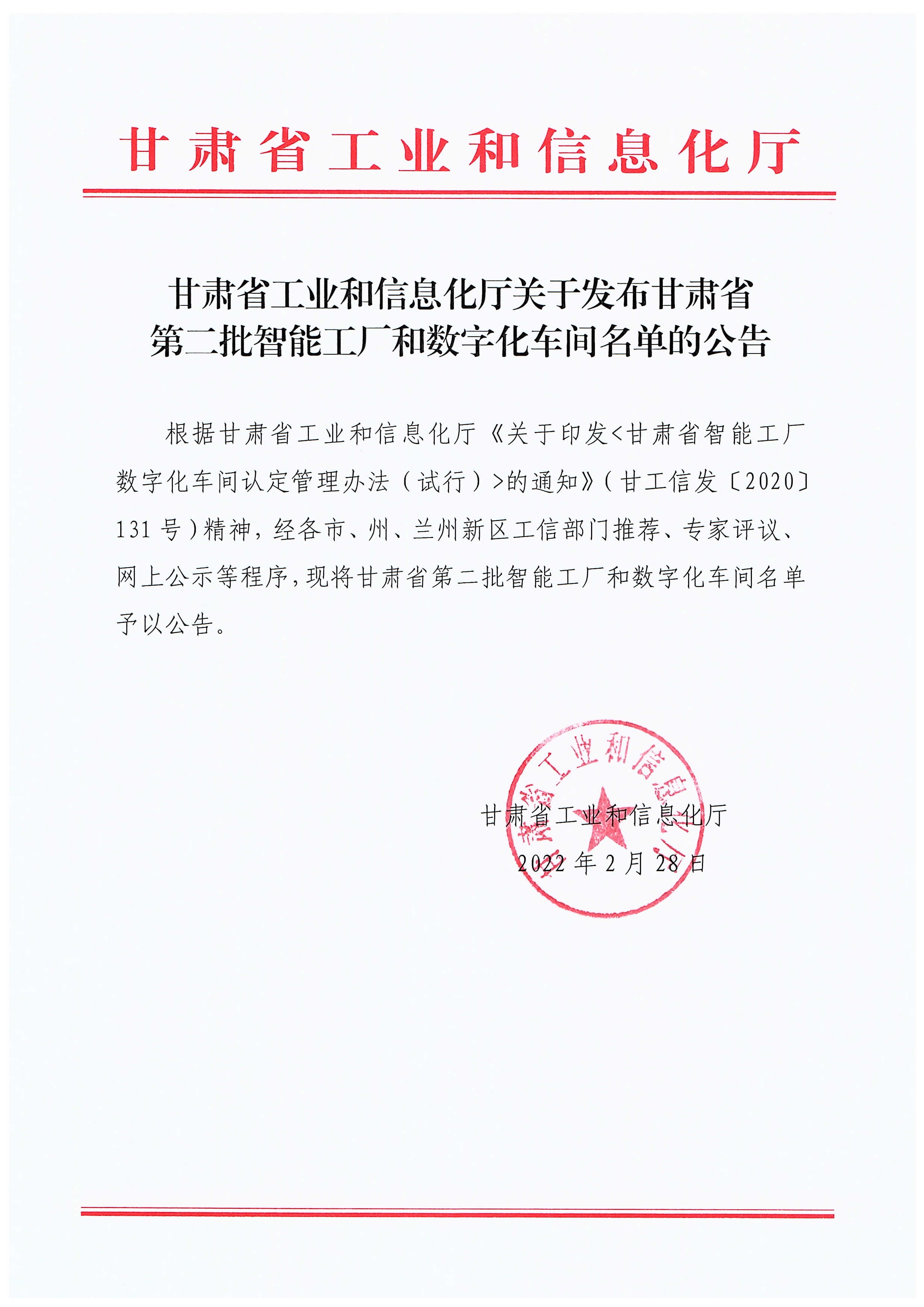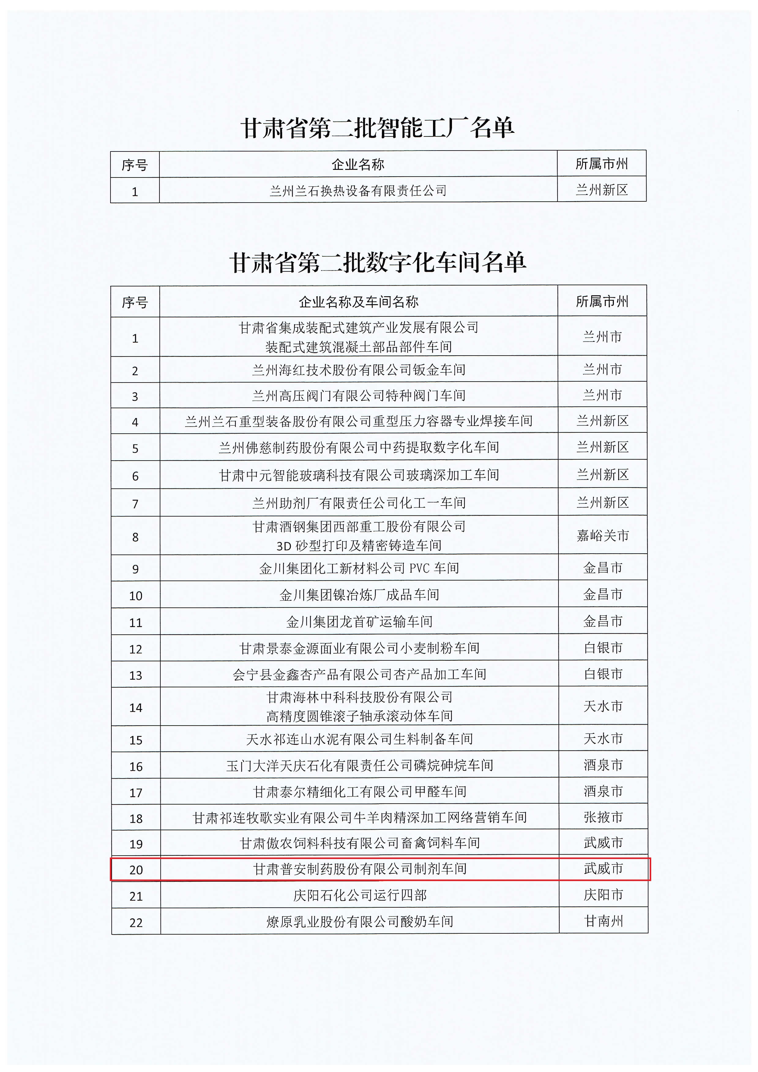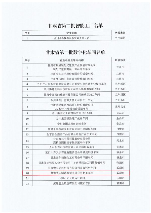〖創(chuàng)新驅(qū)動(dòng) 智能制造〗熱烈祝賀甘肅藥業(yè)集團(tuán)普安制藥制劑車間通過(guò)甘肅省第二批數(shù)字化車間認(rèn)定