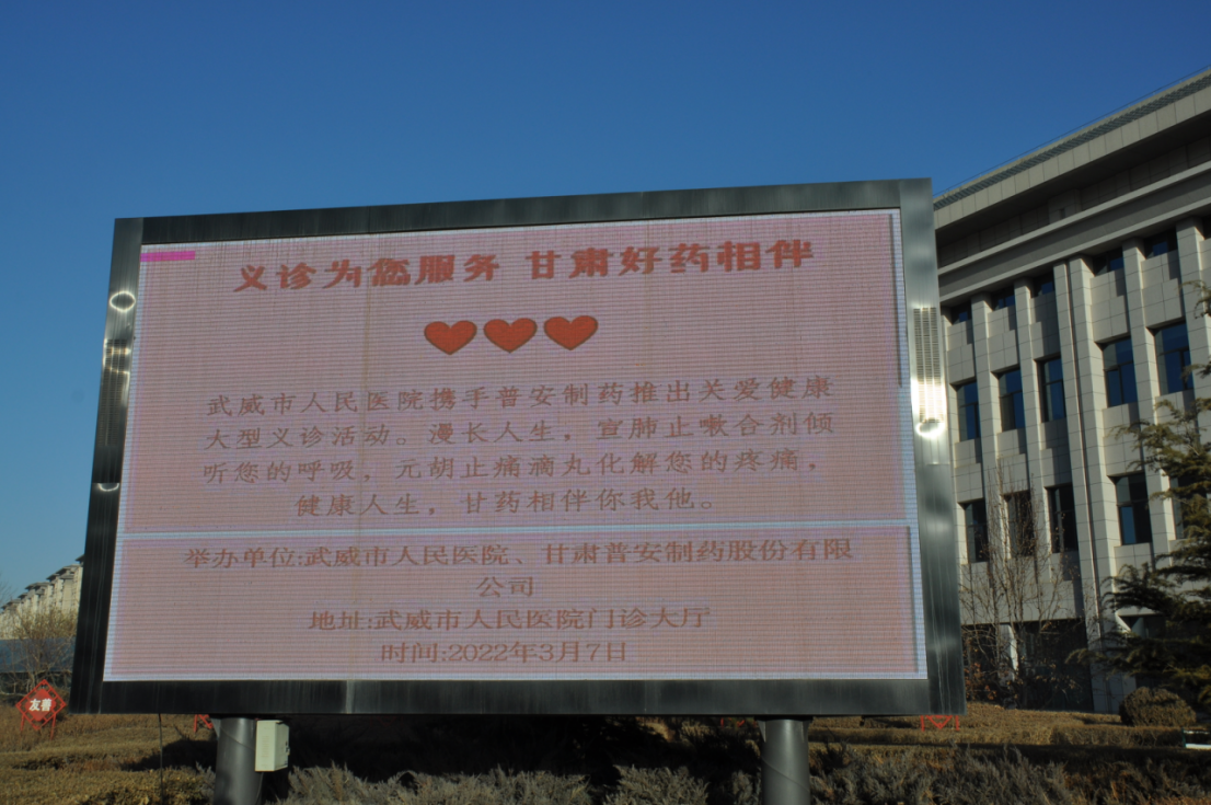 3月7日,普安制藥一行七人前往武威市人民醫院開展“慶三·八,關愛婦女”慰問活動,并聯合武威市人民醫院開展“相約三月 關愛健康”義診活動,為全市人民送醫送藥送健康。向奮戰在抗“疫”一線及醫院各科室女醫護人員致以節日的問候和誠摯的祝福!并借助此次活動向醫務工作者及廣大市民宣傳、推介了宣肺止嗽合劑及元胡止痛滴丸。