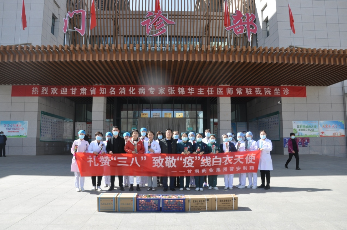 3月7日下午,普安制藥一行四人前往武威市中醫(yī)院慰問奮戰(zhàn)在疫情防控“疫”線的女醫(yī)護人員,為她們獻上了鮮艷的玫瑰、新鮮的水果和藥品,祝奮戰(zhàn)在“疫”線以及默默奉獻在醫(yī)院各個工作崗位的全體女職工們“三八”節(jié)日快樂,祝愿她們永遠健康美麗,幸?鞓。