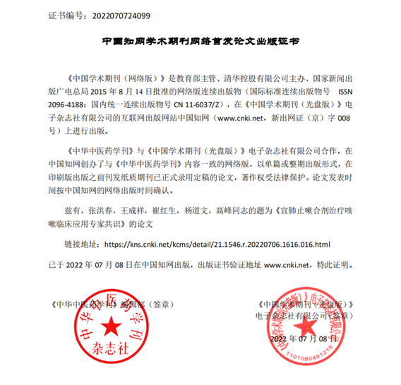 喜訊 !《宣肺止嗽合劑治療咳嗽臨床應用專家共識》完成網絡版首發