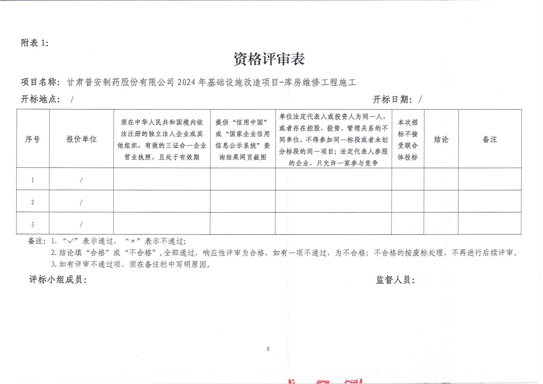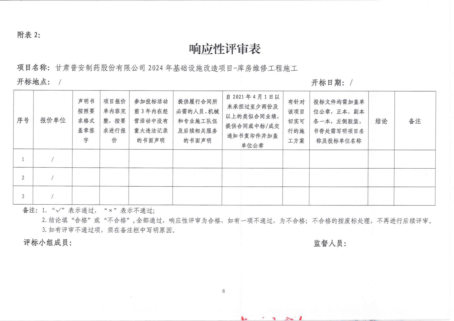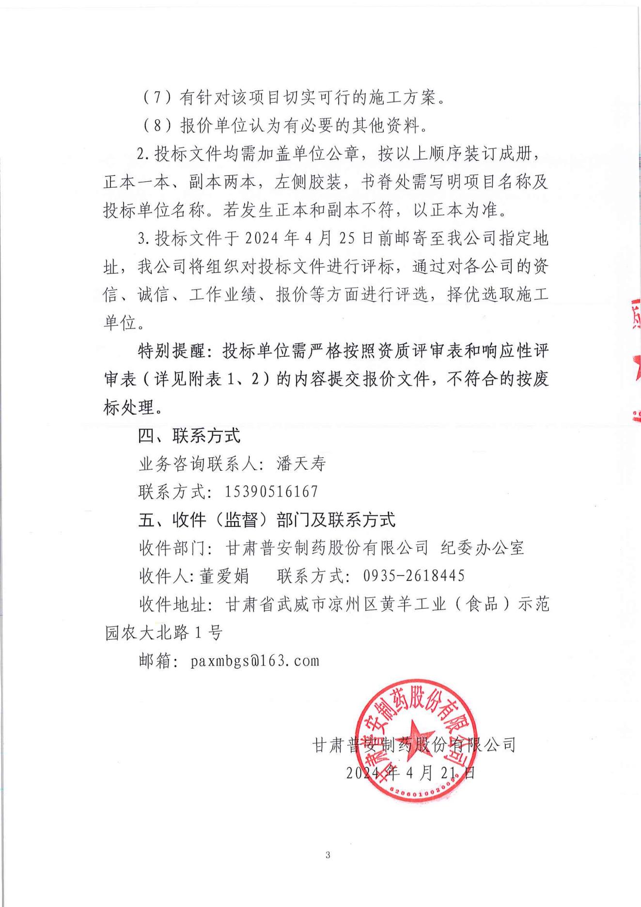 甘肅普安制藥股份有限公司2024年基礎設施改造項目-庫房維修工程施工招標公告