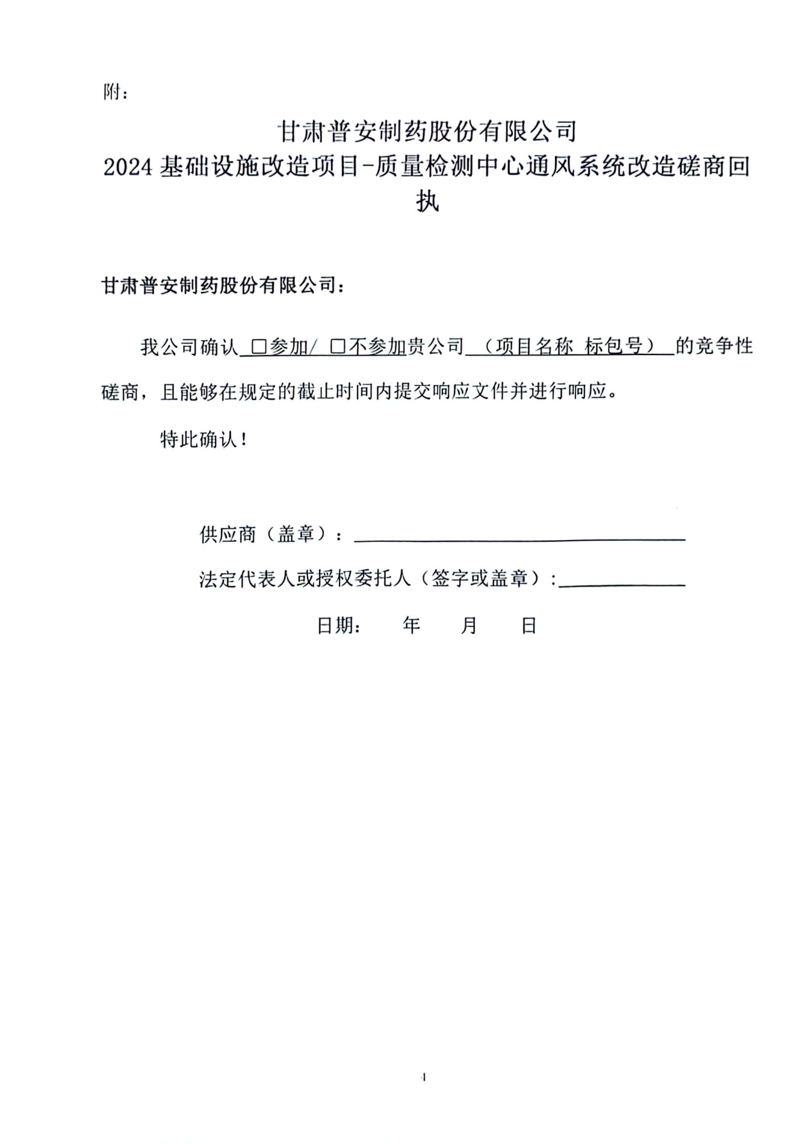 甘肅普安制藥股份有限公司2024年基礎設施改造項目-質量檢測中心通風系統(tǒng)改造競爭性磋商公告